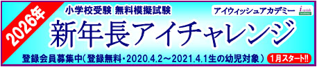 小学校受験を目指す2026年度年長児(2020.4.2~2021.4.1生まれ)の皆さま、無料模擬試験アイチャレンジを是非ご利用ください! (随時ご入会できます。※入会・受験ともに無料です。)